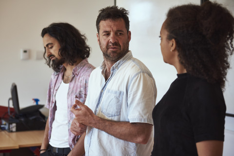 De acteurs vertolken de ervaringen van geïnterviewde jongeren en delen hun eigen verhaal. Dit doen zij tussen de tafels (en erop en eronder) in de klas, vlakbij de leerling.