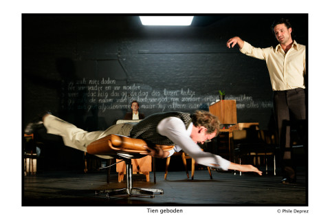 Johan Simons maakte met het ensemble van NTGent en de acteurs van het Wunderbaum ensemble het tweeluik Tien Geboden, gebaseerd op de televisieserie van Krzysztof Kieslowski en Krysztof Piesiewicz. In tien afleveringen verpakken ze snijdende morele thema’s in even bizarre als herkenbare situaties, associatief gebaseerd op de Tien geboden die je misschien nog uit het hoofd kent. De bewerking van Koen Tachelet respecteert de filmische sfeer van de verhalen en Johan Simons maakt er een ontroerende, intieme voorstelling van.