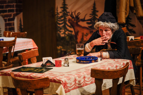 Het café is altijd een sociale smeltkroes geweest waar de gebeurtenissen steeds opnieuw werden geïnterpreteerd. In het stuk zien we onder meer een aantal stamgasten die hun eigen waarheid doordrenkt met alcohol in leven proberen te houden. Tegen de achtergrond van het Duitsland van na de hereniging komt wrok naar boven en worden alternatieve verhalen verteld. Wees welkom aan onze stamtafel. Op naar ‘De Wartburg’.